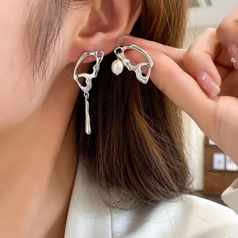 New Asymmetric Hollow Butterfly Dangle Earrings Silver Color Irregular Metal Water Drop Pendants Hanging Earrings brincos