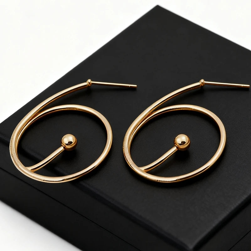 New Minimalist Gold Spiral Women's Drop Earrings with Bead Unique Statement Ear Jewelry for Effortlessly Chic Daily Looks