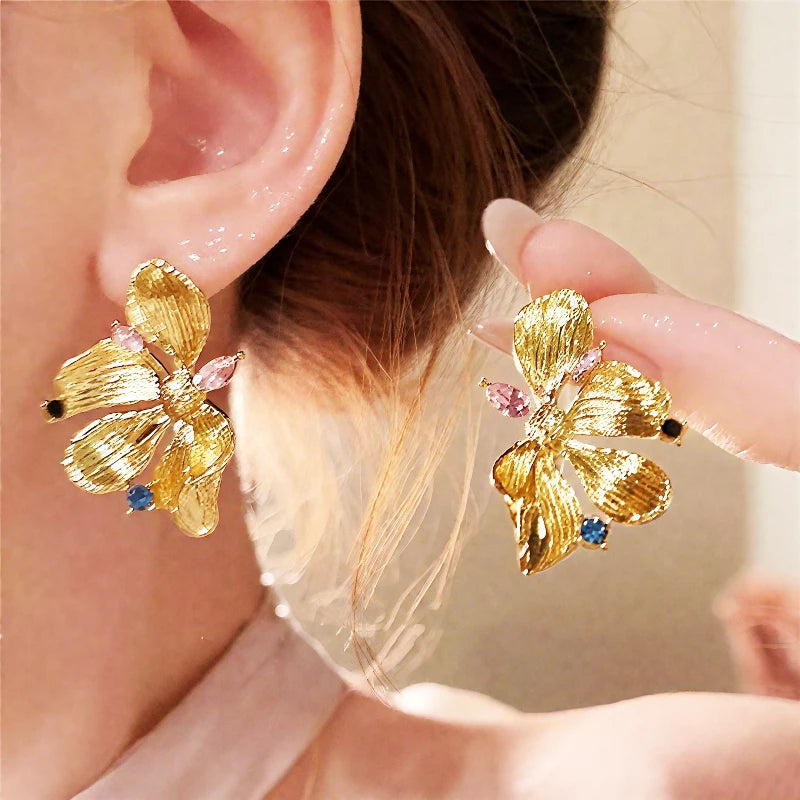 Gold Color Butterfly Women's Hanging Earrings Irregular Design Exaggerated European Animal Shape Dangle Earrings for Ladies