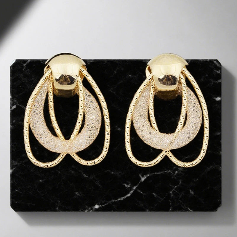 Double Horse Eyes Dangle Earrings for Women Hollow Net Water Drop Crystal Punk Style Exaggerated Ear Jewelry Female Accessory