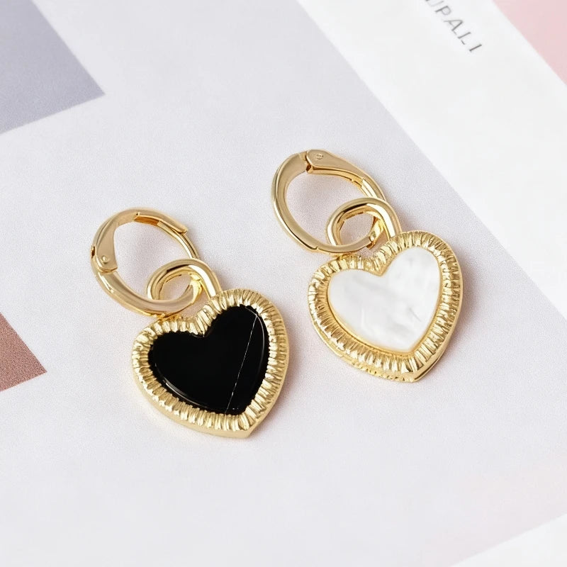 2026 Asymmetrical Heart Hanging Earrings for Women Black White Enamel Hearts Pendants Female Dangle Earrings Fashion Ear Jewelry