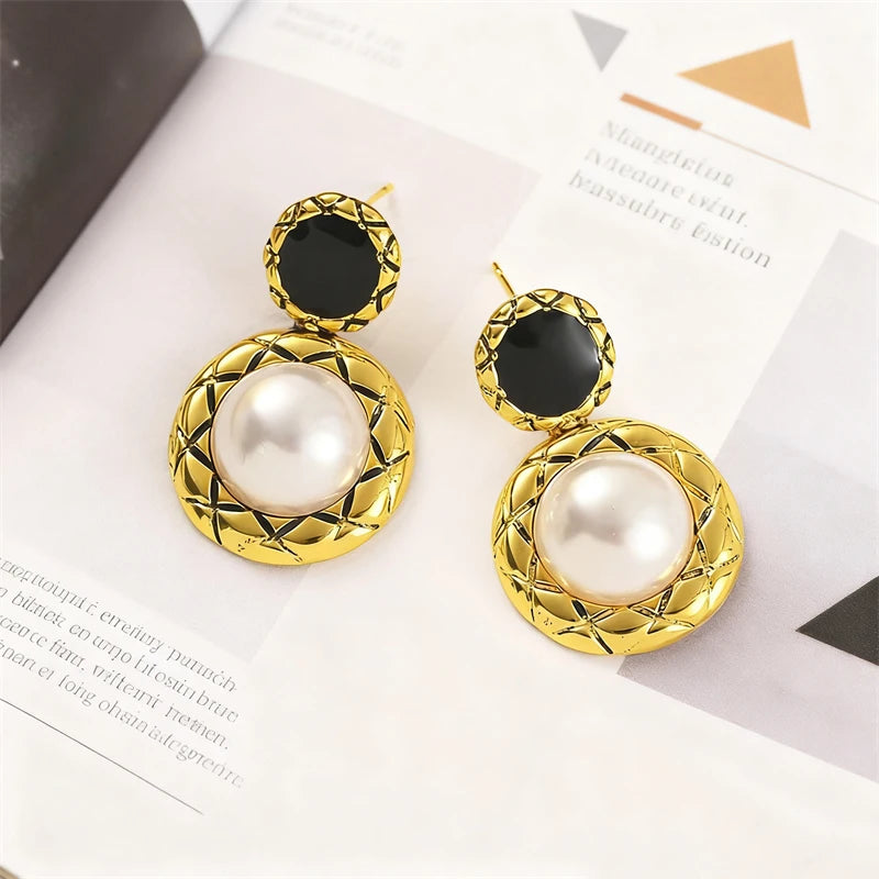2026 New Vintage Pearl Women's Hanging Earrings Double-layers Round Pendants Dangle Earrings for Female French Fashion Jewelry