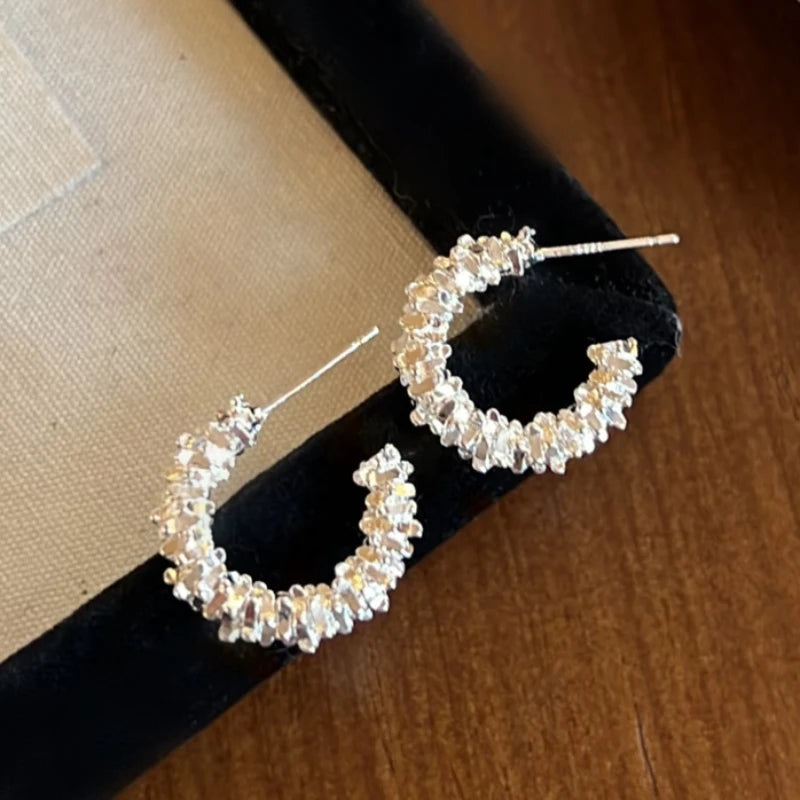 2025 New Silver Color C-shaped Women's Dangle Earrings Uneven Metal Sequins Unique Design Girls Small Earrings Boho Jewelry
