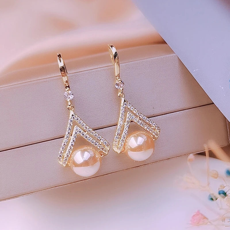 Champagne Ball Pendants Women's Hook Earrings Crystal Hollow Rhombus Hanging Earrings for Female Luxury Wedding Ear Jewelry