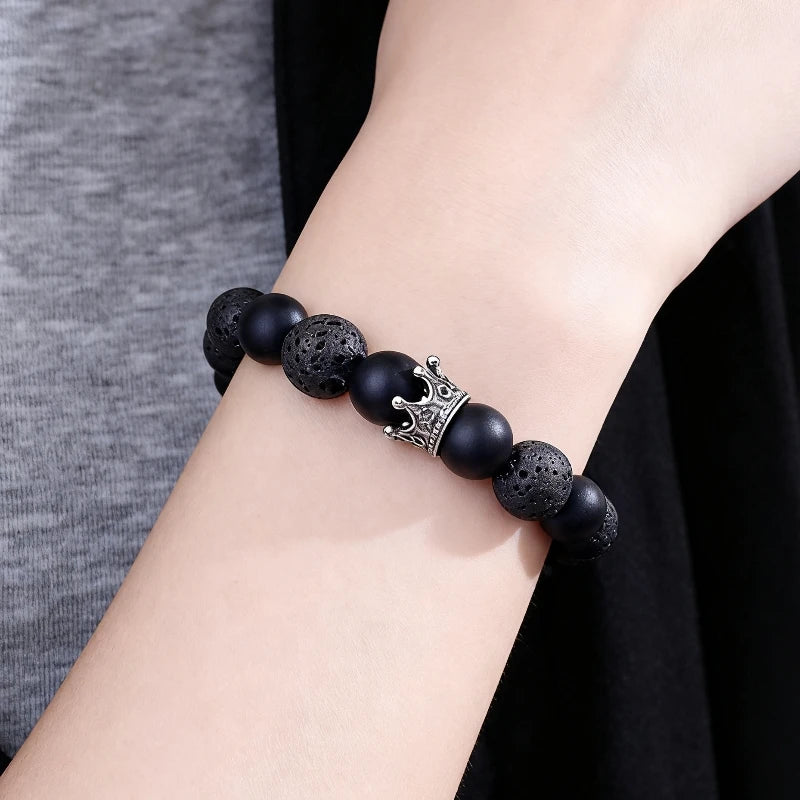 Marble Stripe Black White Crown Bangles for Women Men Elastic Unisex Bracelets Punk Personality Hand Jewelry pulsera hombre 2023