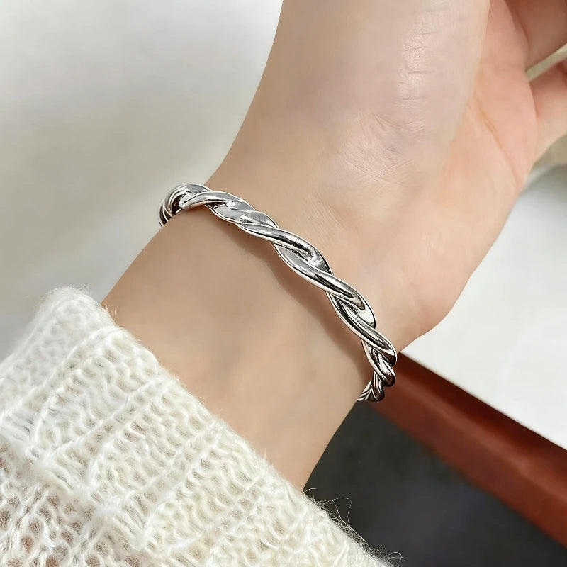 Silver Color Twisted Braided Women's Bangles Alloy Adjustable Small Bracelets for Girls Personality Elegant Party Hand Jewelry