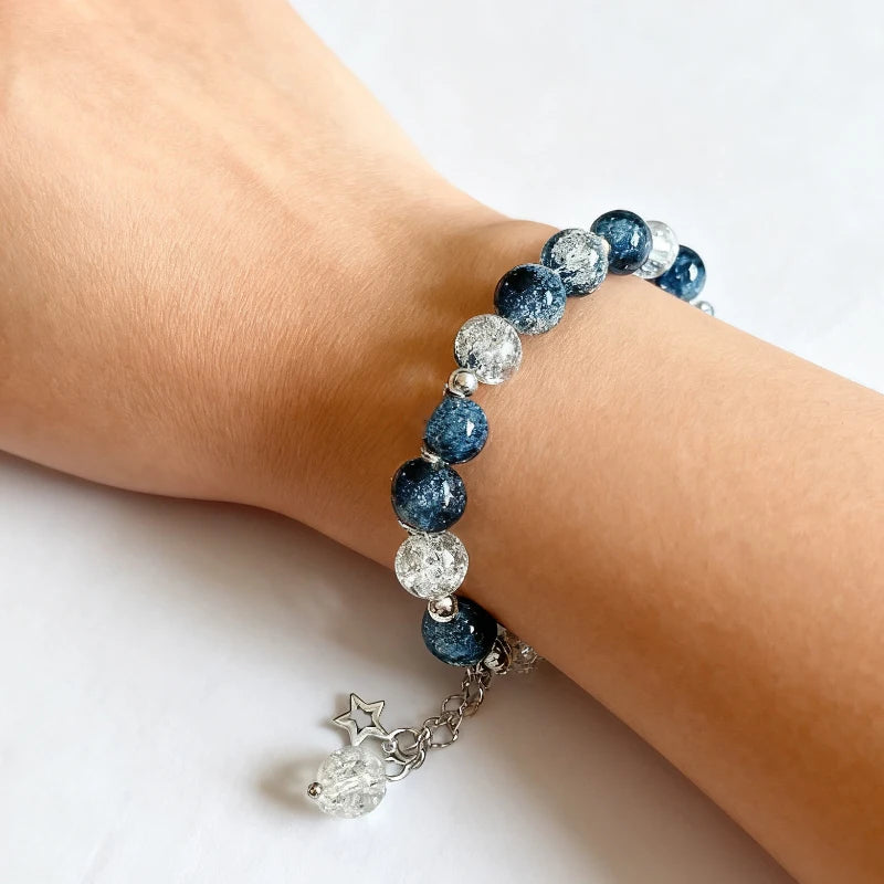 Starry Sky Blue Acrylic Beads Bracelets for Women Silver Color Stars Pendants Elastic Wrist Chain Lovely Hanf Accessories