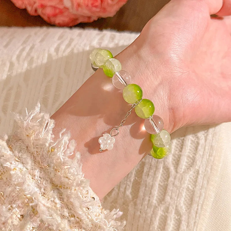 Green Acrylic Crystal Women's Elastic Bracelets Transparent Flower Pendants Sweet Fairy Korean Fashion Wrist Accessories