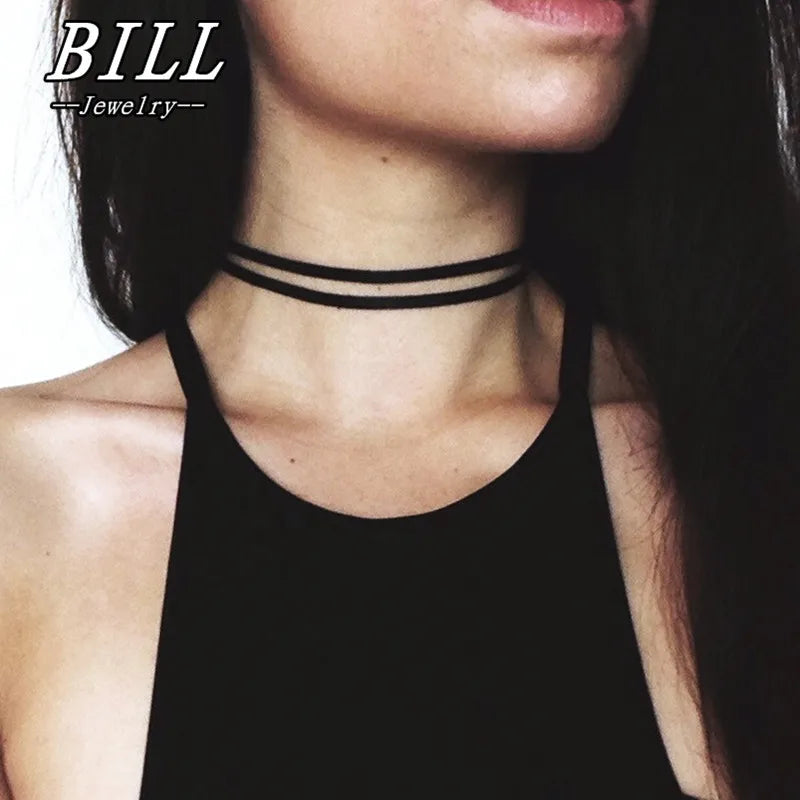 New Multilayer Black Suede Choker Necklace Leather Gothic Sexy Velvet Chokers Colares Jewelry Punk Necklace Jewellery Bijoux