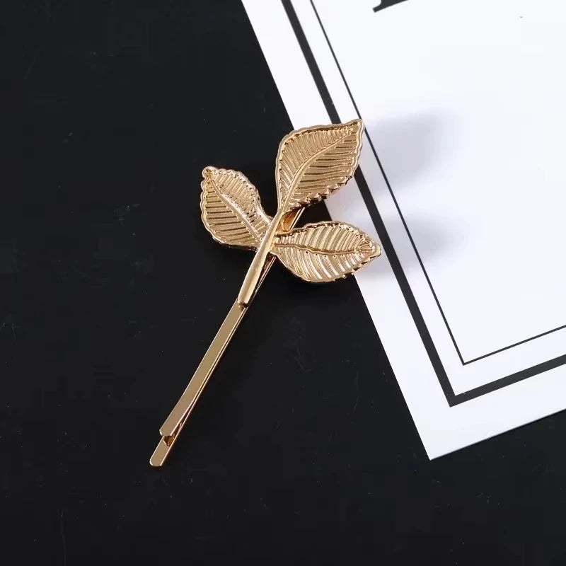 Korean Fashion Leaf Hairpins for Women Three Leaves Gold Color Metal Pins Head Barrettes Elegant Hair Accessories