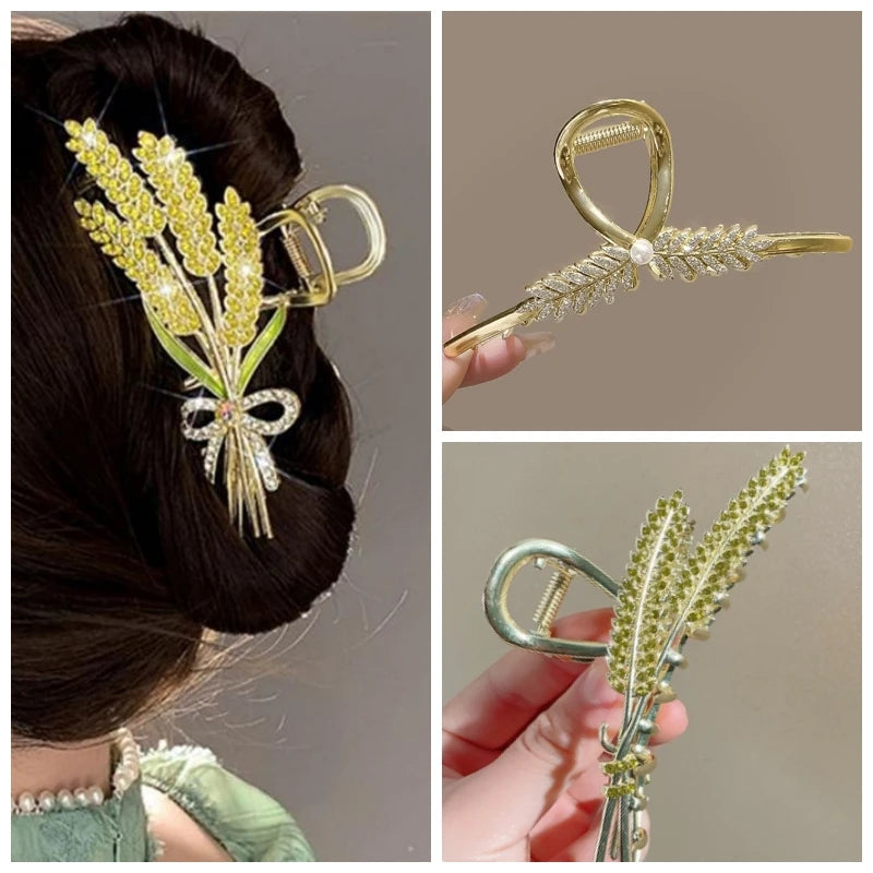 Green Enamel Plant Women's Barrettes Big Elegant Gold Color Wheat Luxury Flower Hair Pins for Girls Hair Accessories 2023