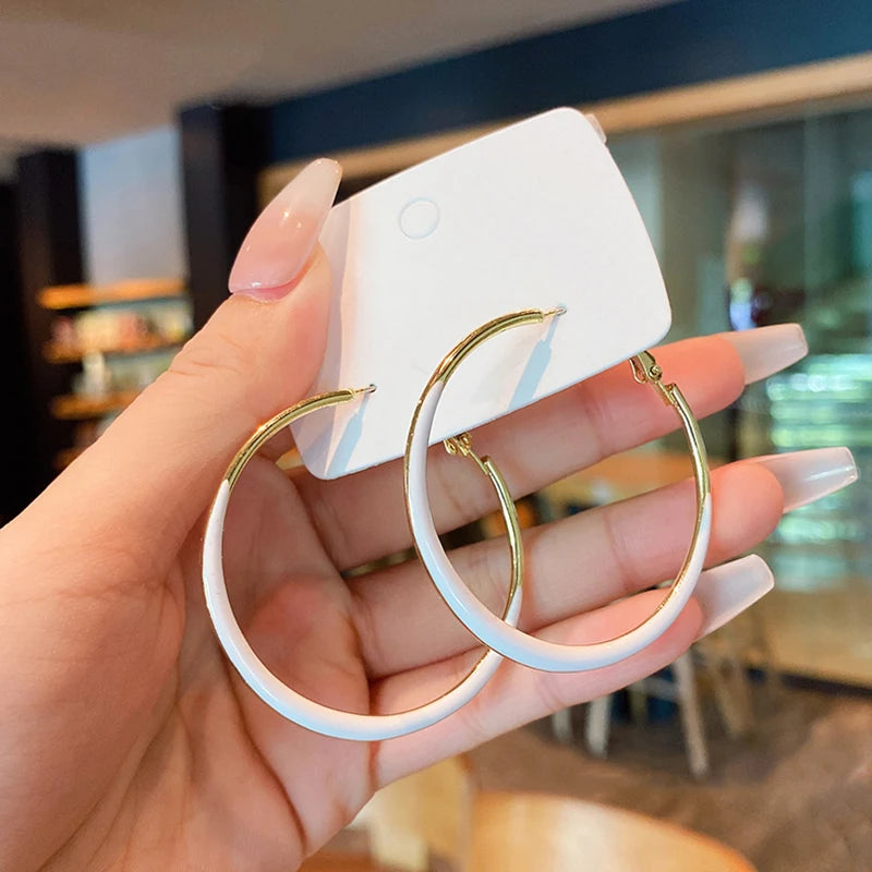 White Enamel Hoop Earrings for Women 40mm Punk Fashion Girls Ear Decoration New Trendy Unusual Earrings pendientes para novia