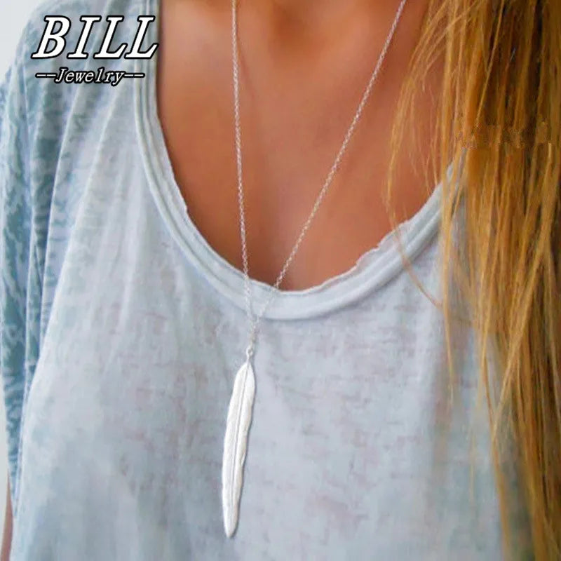 Long Feather Statement Pendant Necklace For Women Sexy Chain Neck Collars Simple Fashion Collies Minimalist Beach Jewelry