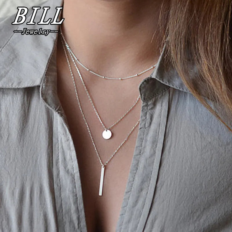 New European Simple Multi Layers Tassels Bar Coin Necklace Clavicle Chains Charm Womens Fashion Jewelry Colar