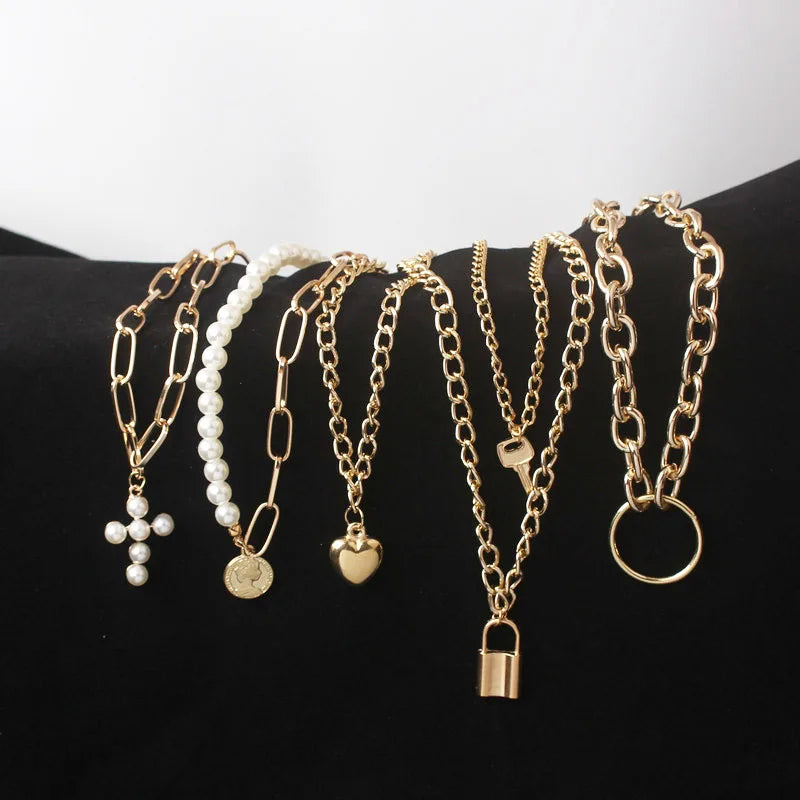 Multi-layers Necklaces for Women Personality Hollow Geometric Pendantes Necklaces Gold Color Cross Necklaces Punk Collar