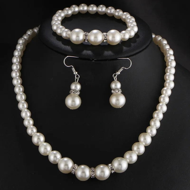 N308 Wedding Engagement Women Simulated Pearls Jewelry Set Necklace / Earrings / Bracelets Fashion Jewelry For Lady Party Gift
