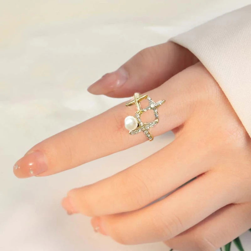 New Pearl Knuckle Rings Crystal Close Rings for Women Rhinestone Gold Color Alloy Cross New Fashion Fingers Accessories 2025