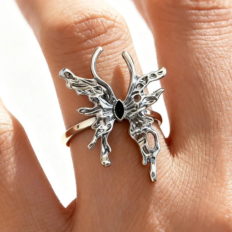 Silver Color Butterfly Women's Open Rings Adjustable Size Sculptural Design Punk Bohemian Fingers Jewelry for Ladies new