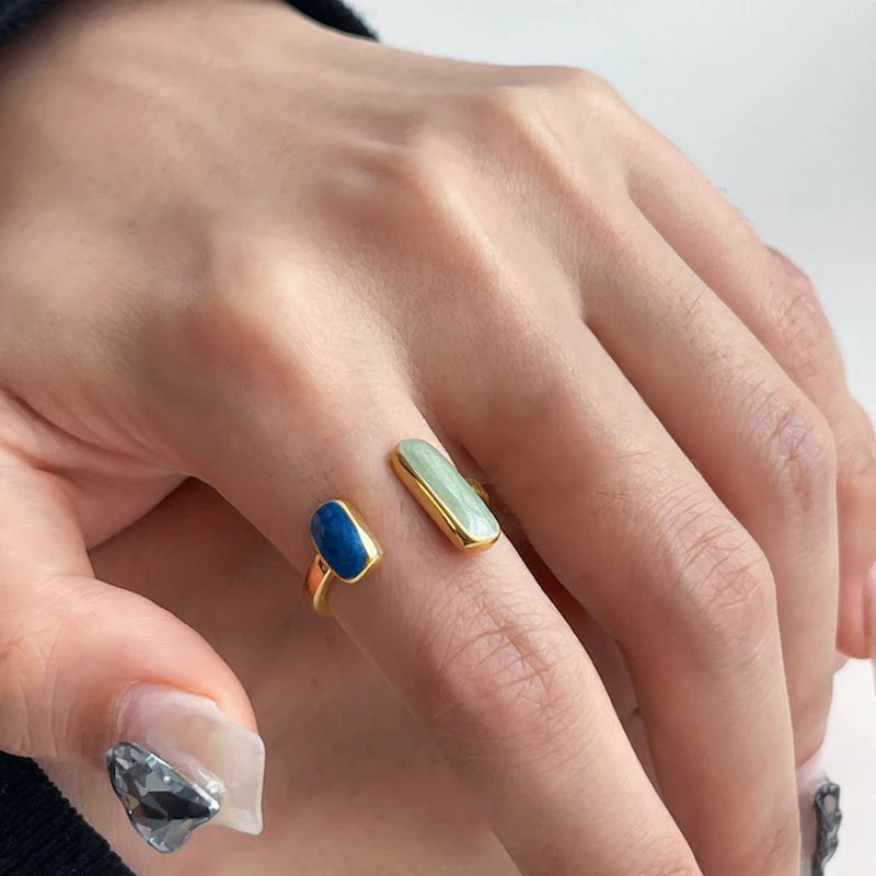 New Trend Enamel Open Rings for Women Blue Acrylic Gold Color Rings Adjustable Fingers Accessories Korean bague femme 2025