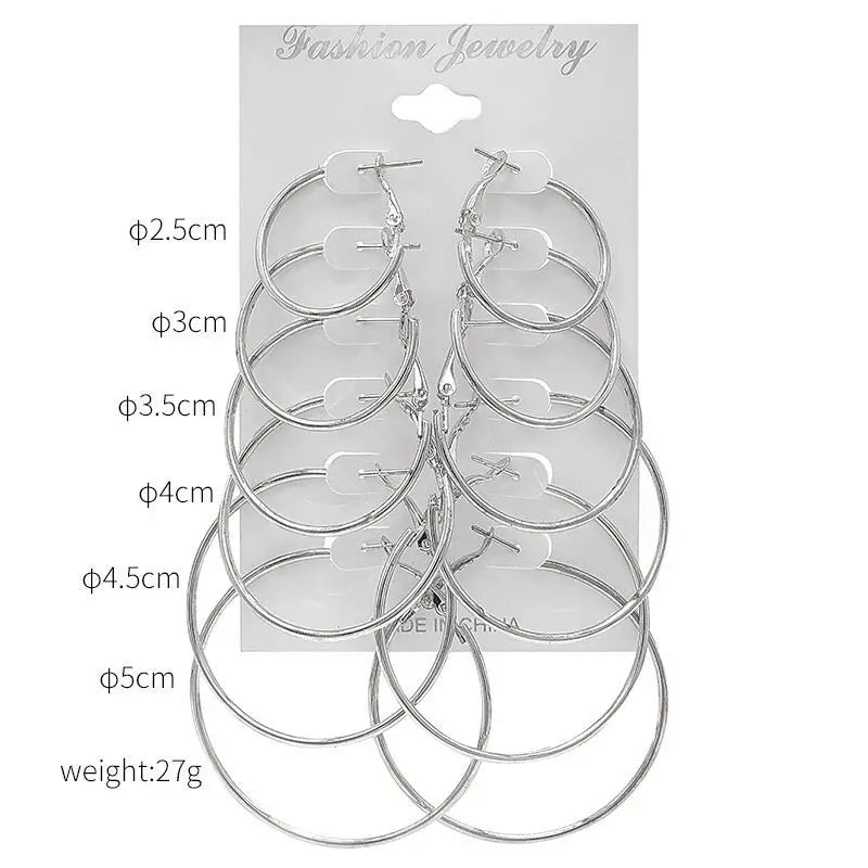 12pcs/lot Women's Hoop Earrings Gold Color Round Large Earrings Set Brincos Loop Earrings new pendientes para novia