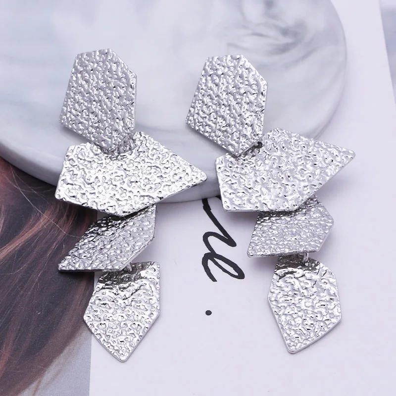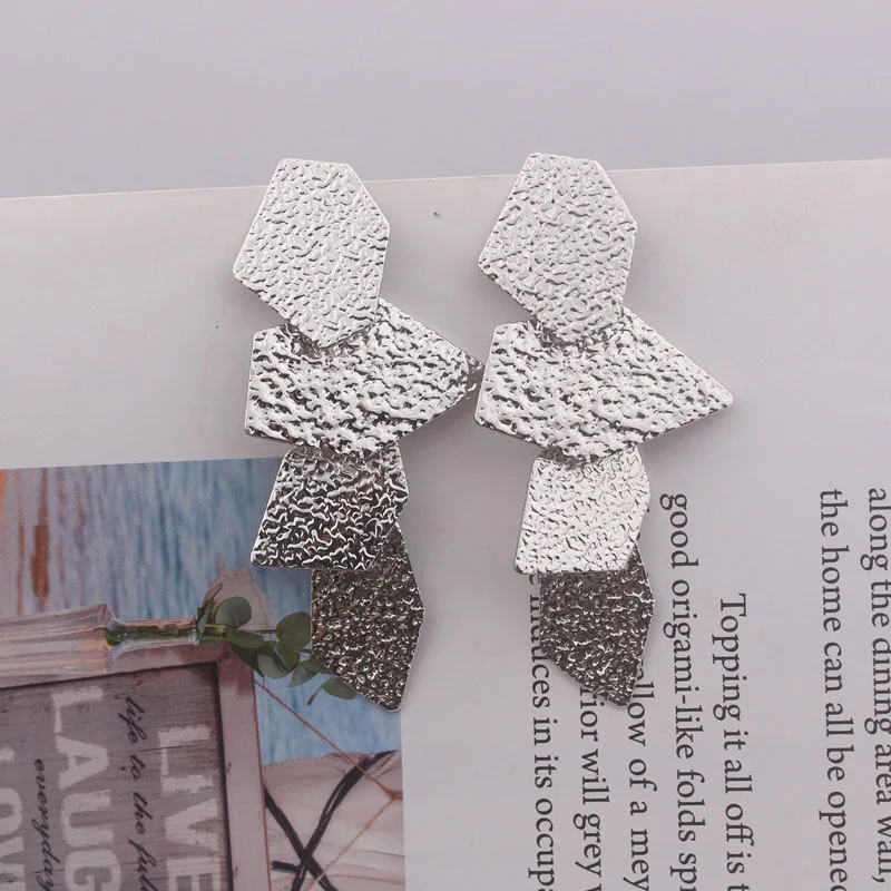 Big Exaggerated Metal Geometric Dangle Earrings For Women Irregular Multi-layer Texture Earrings Jewelry Fashion Accessories