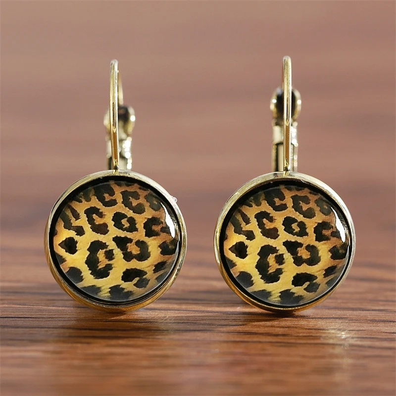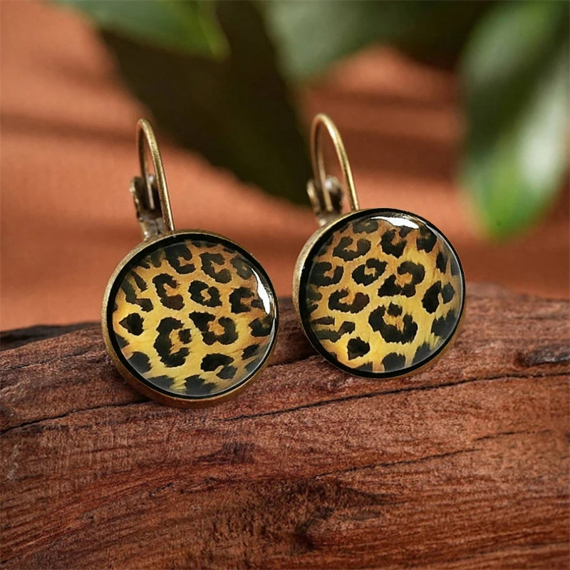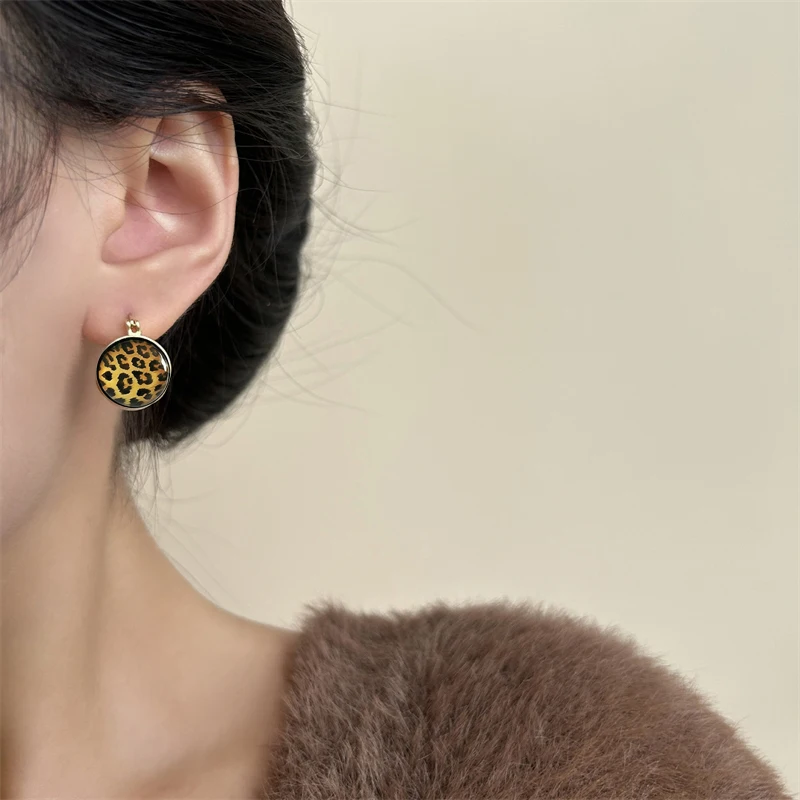 Leopard Print Women's Stud Earrings Small Round Ear Buckle Vintage Design Unusual Earrings 2025 trend new Lovely Ear Accessories