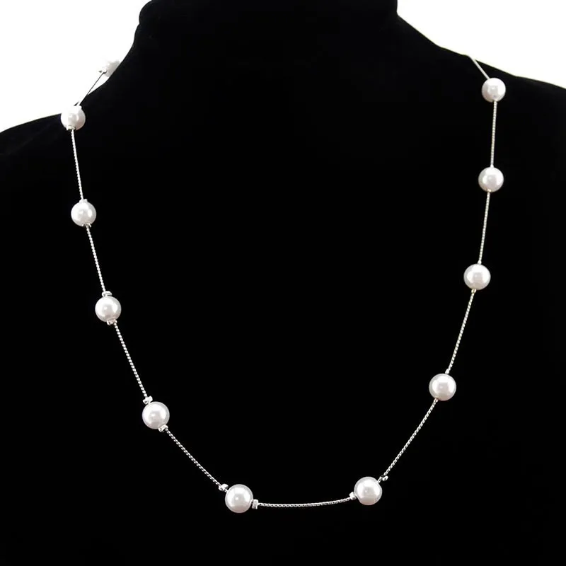 N981 Womens Jewellery Colliers Chain Simulated Pearls Necklace Bridal Jewelry Necklaces Female White Wedding Gifts Collares