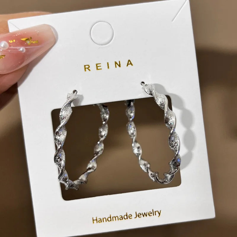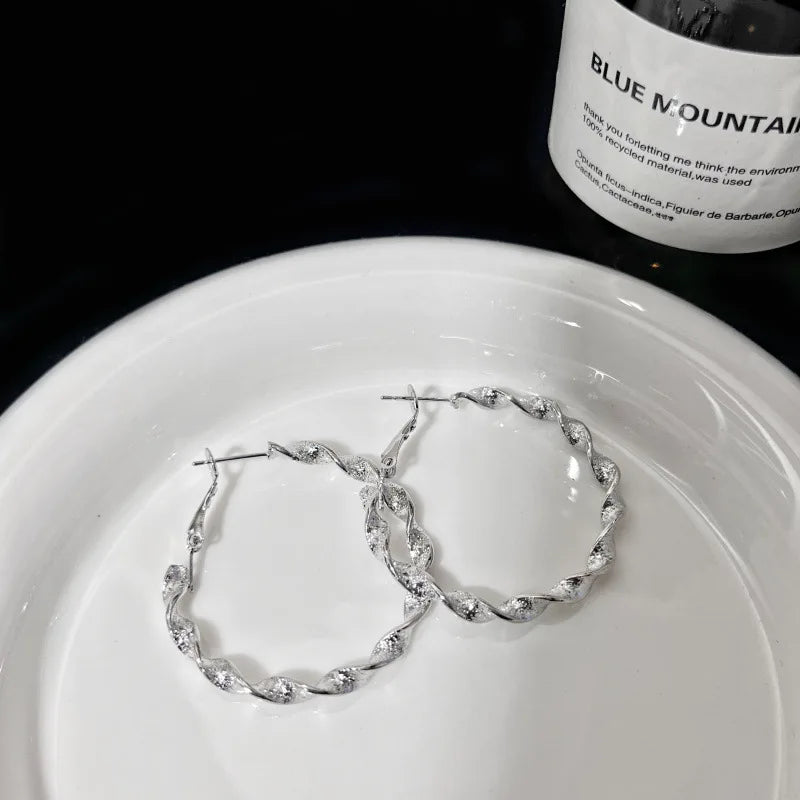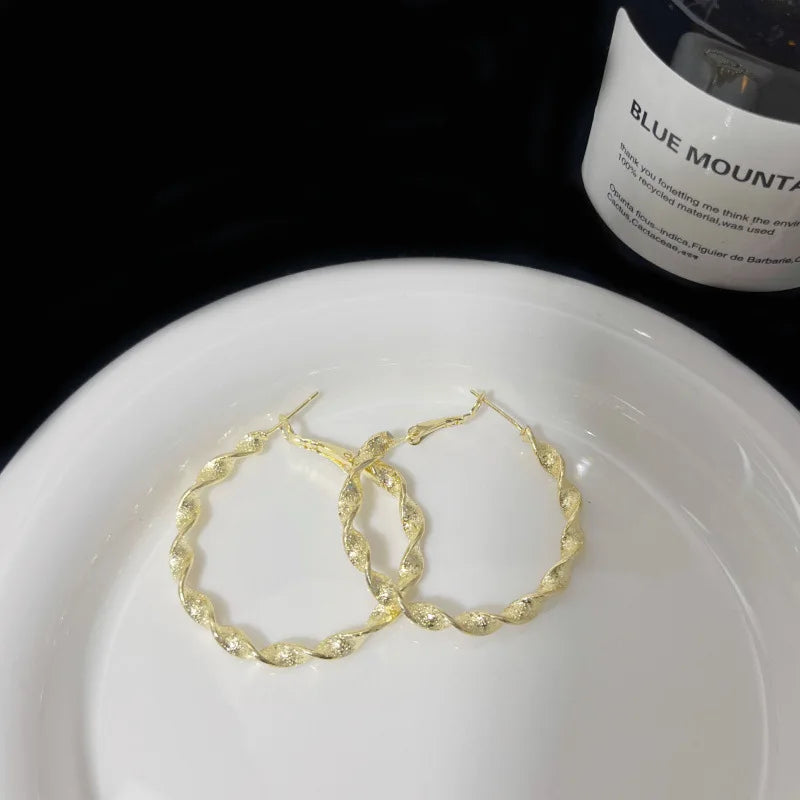 New Exaggerated Twisted Women's Hoop Earrings Gold Color Uneven Metal Loop Earrings Punk Personality Fashion Ear Jewelry