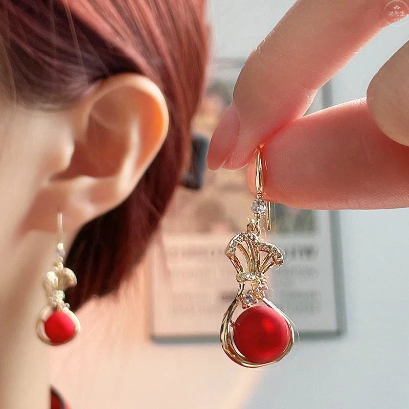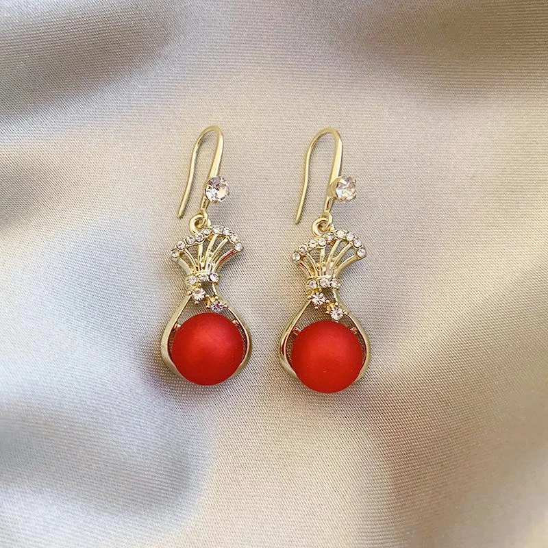 New Trend Lucky Bag Hanging Earrings for Women Red Ball Pendants Female Dangle Earrings Elegant Wedding Jewelry Hook Earrings