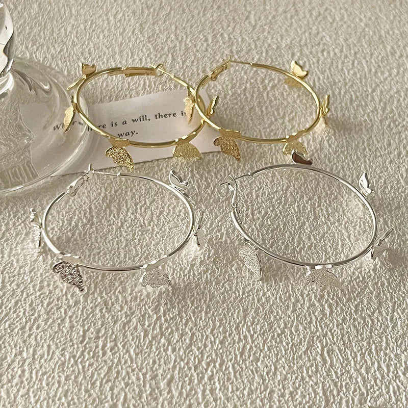 New Trendy Women's Buttery Hoop Earrings Fashion Hiphop Loop Earrings Metal Loop Earrings Korean Elegant Ear Jewelry 2024