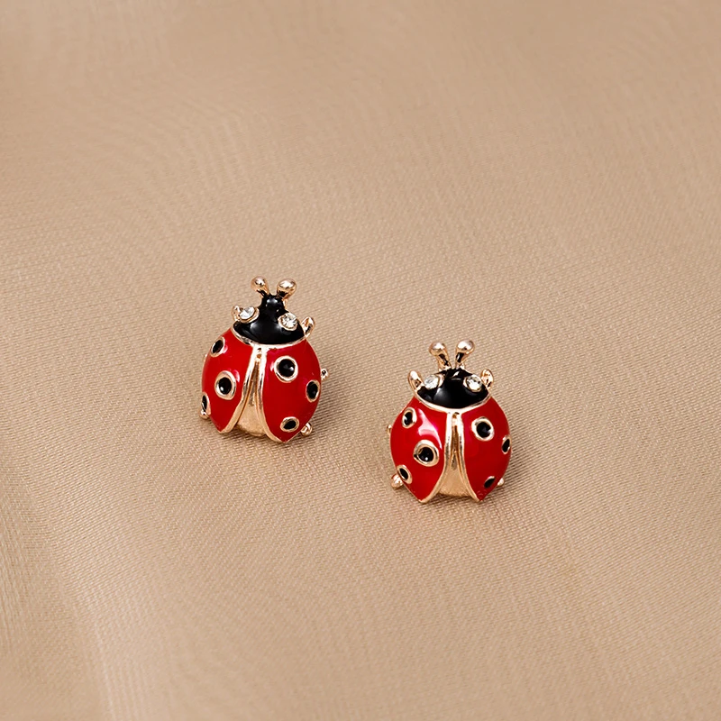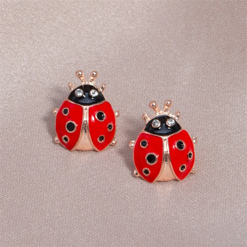 Red Enamel Insect Women's Stud Earrings Rhinestone Mini Funny Animal Earrings for Girls Lovely Personality Tiny Ear Accessories