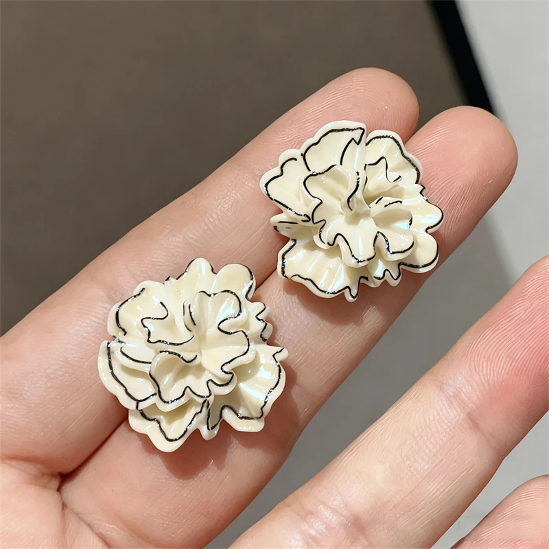 Three-dimensional Flower Stud Earrings for Women Beige Black Korean Cute Earrings Acrylic Plastic Florals Chic Women's Earrings